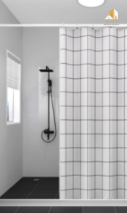 Rèm hoặc dải nhà tắm là một giải pháp thay thế hợp lý khác để tạo ra phân chia giữa khu vực khô và ướt trong phòng tắm. Rèm phòng tắm giúp ngăn chặn nước bắn ra ngoài, trong khi dải ở dưới ngăn chặn nước tràn ra khỏi khu vực tắm. Với thiết kế này, không chỉ chi phí thấp mà còn dễ dàng lắp đặt và thay thế khi cần thiết.