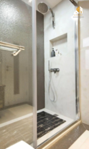 Nếu phòng tắm của bạn có một góc hoặc hốc tường, hãy cân nhắc chuyển nó thành khu vực tắm vòi sen. Bằng cách lắp đặt vách tắm góc hoặc cong, bạn có thể tận dụng tối đa không gian sẵn có trong phòng tắm của mình, đồng thời đảm bảo sự phân chia rõ ràng giữa khu vực ướt và khô.